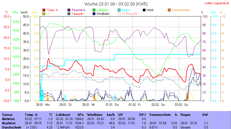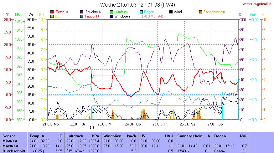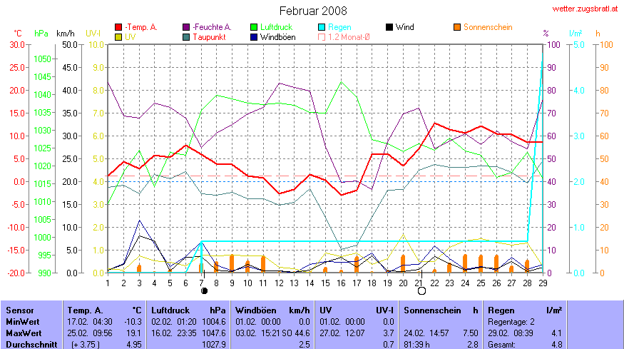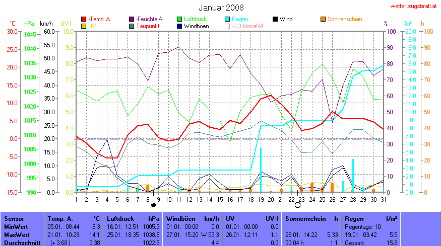 | Die dargestellten Werte repräsentieren die Daten des aktuellen Tages! Der Luftdruck ist auf Meereshöhe bezogen! |